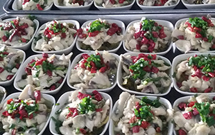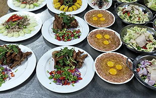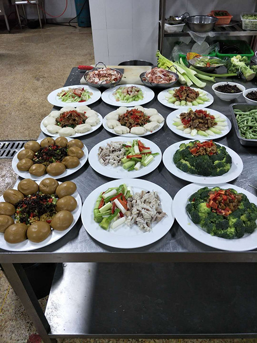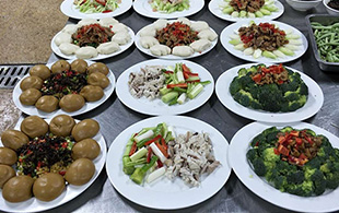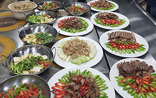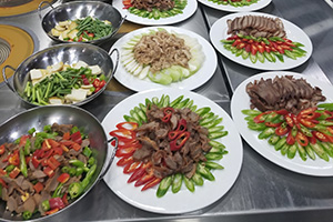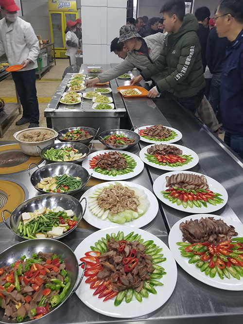 菜品搭配由营养师及厨师长合作进行,保证菜肴的色、香、味、形和营养价值。分菜系安排厨师进行制作菜肴,并且每半年根据需求对厨师进行一次轮换,不断丰富饭菜的品种和口味,满足就餐员工口味需求。